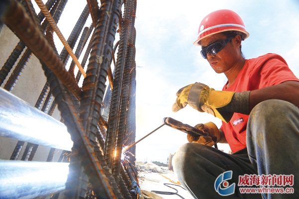 ????7月18日,在美國捷普(威海)工業園二期項目工地,幾棟高大的建筑便映入眼簾,巨大的吊機在空中揮舞著長長的鐵臂,場面甚是壯觀。進入施工現場,數百名工人忙著扎鋼筋、澆筑混凝土,鋼筋工、瓦工、木工等十多個工種各司其職,整個工地上緊張忙碌卻又振奮人心。
