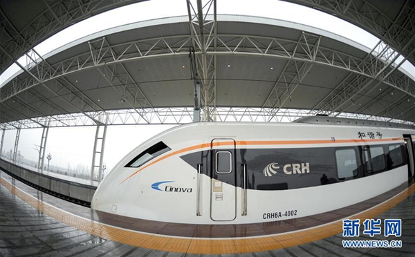 一列城際動車停靠在四川都江堰站(2014年2月12日攝)。新華社記者薛玉斌攝