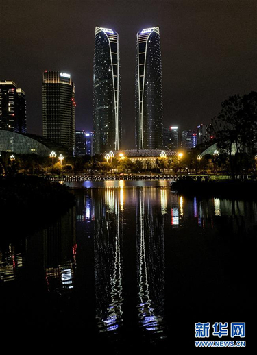 這是四川省成都市高新區天府國際金融中心的夜景(7月12日攝)。新華社記者 薛玉斌 攝