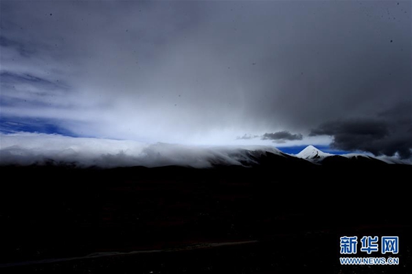 這是在青海省海西蒙古族藏族自治州格爾木市境內拍攝的昆侖山玉珠峰一角(2017年8月19日攝)。新華社記者 張宏祥 攝