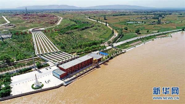 寧夏固海擴灌揚水工程泉眼山泵站(2018年9月6日無人機拍攝)。 新華社記者 王鵬 攝