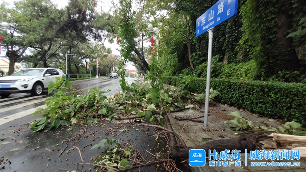 市區(qū)一行道樹(shù)樹(shù)枝被風(fēng)吹斷。威海晚報(bào)記者 王曉 攝