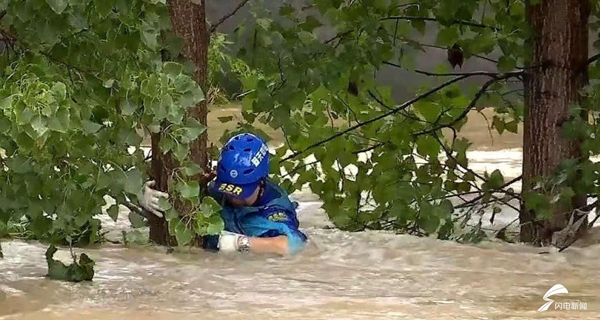 “穿藍色服裝的救援人員緊緊地抱著一棵樹,而旁邊穿黃色救援服裝的救援人員最危險,他的整個身子被水淹到了里面。”直播記者口中的黃衣人就是魏興,隨著雨勢的加大,水流越來越急,救援一度陷入絕境。