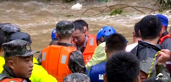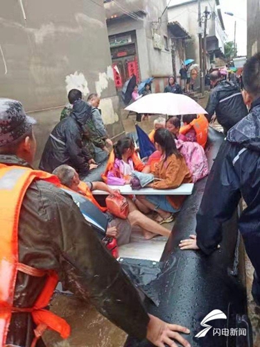 12日,臺風登陸山東,狂風攜暴雨開始肆虐,水庫填滿,河流洶涌,大水很快蔓延到章丘,相公鎮皋西村陷入重圍,2000余名群眾的逃生路成了跨不過的河。災情就是命令,濟南某預備役舟橋團、公安消防、藍天救援隊,迅速集結,奔赴一線。