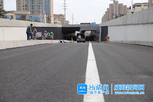 ??? 隧道敞口處工人正在進(jìn)行墻面施工,交警部門現(xiàn)場(chǎng)畫線,環(huán)島東西向道路清障緊張進(jìn)行……8月22日下午,海濱南路—上海路環(huán)島改造工程現(xiàn)場(chǎng)格外火熱。