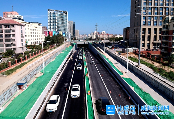 8月23日,車輛有序通過(guò)剛剛通車的大轉(zhuǎn)盤(pán)下穿隧道。 威海晚報(bào)記者 姚威 攝