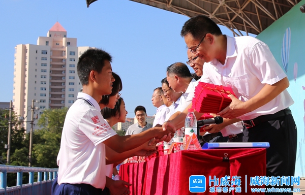 ????在隨后的表彰環節,威海一中副校長林羅軍宣讀了關于授予徐兆聰、盧子悅等590名新生“軍政訓練先進個人”及授予20多個班級“軍政訓練優勝班級”“韻律操訓練優勝班級”“內務衛生優勝班級”等榮譽稱號的決定,學校領導及嘉賓隨后為獲獎班級及先進個人頒發獎狀和證書。