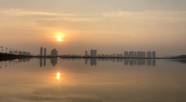 淄博市文昌湖日出。