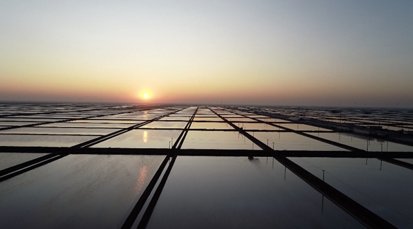 濱州市鹽田日出。