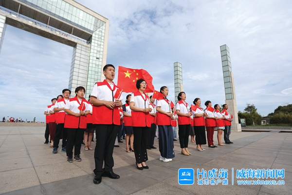 齊唱《我和我的祖國》。 威海晚報記者 王靜 攝