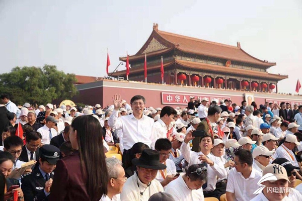 齊魯網10月7日訊 10月1日在北京舉行的精彩紛呈的國慶盛典,點燃了億萬中華兒女的愛國熱情,人們由衷地禮贊偉大祖國。來自山東的各界全國先進模范人物代表應邀參加國慶觀禮,他們現場見證了祖國的偉大。