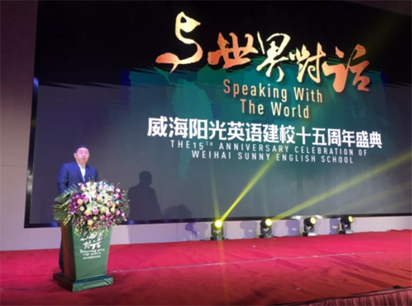 慶典中,威海市教育協會會長、威海北洋職業技術學校校長孫緒學先生上臺致辭,“十五歲的陽光英語有了自己的氣魄,希望在未來的日子里,陽光英語能給更多學生帶去不一樣的英語學習體驗,拓展他們的視野,開闊他們的胸懷。”