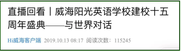 啥活動能在威海爆出11萬的關注度?小五在刷手機時偶然看到了這么一條消息,陽光英語十五周年盛典?11萬閱讀量?這么多人都關注的事兒,怎么能少了我?走,去看看!