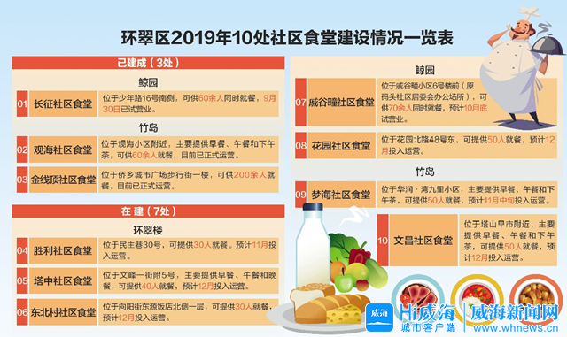 記者從環翠區民政局了解到,年底前,環翠區將建成10處社區食堂,采用市場化方式運行,目前已完工并投入使用3處,在建7處。