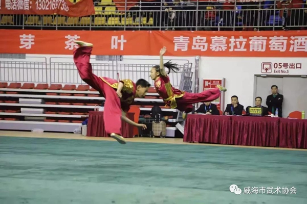 ????威海市武術(shù)協(xié)會(huì)派出了由文登區(qū)教育和體育局、環(huán)翠區(qū)半月灣小學(xué)、道誠武苑、高區(qū)龍武堂功夫會(huì)館、乳山市牛郎棍等34支代表隊(duì)、400多運(yùn)動(dòng)員組成的代表團(tuán)參加比賽,共獲50枚金牌,56枚銀牌,48枚銅牌,以優(yōu)異的成績(jī)獲得團(tuán)體第6名的好成績(jī)。