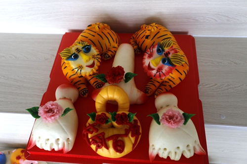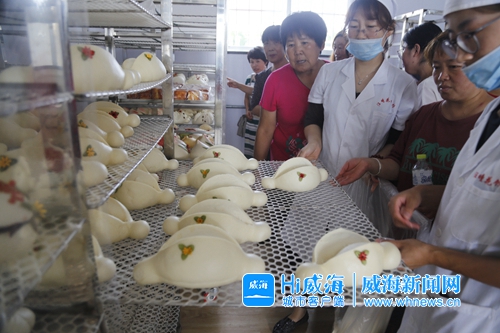 參觀剛出爐的制作精美的花餑餑。記者 劉志鵬 攝