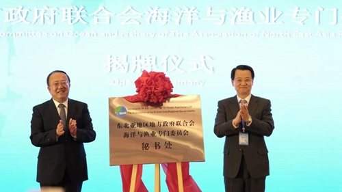 開幕式上,與會嘉賓為東北亞地區地方政府聯合會海洋與漁業專門委員會秘書處揭牌,并將永久會址設在威海,這是首個常設在威海的海洋國際組織辦事機構。