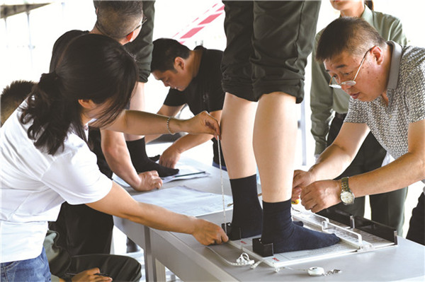 “這里的走線弧度應該再大一些”“鞋幫的顏色可能總體還要調淺一點”……在金猴集團有限公司工業設計中心開發一室內,設計師齊耐斌拿著剛制作出的男式沙灘鞋鞋幫版樣仔細檢查,之后又趕去中試車間與鞋匠們溝通改進方案。