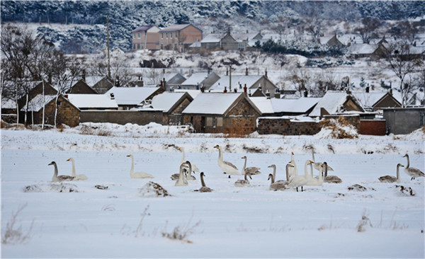 冬天天寒地凍,大天鵝覓食困難的時候,村民便用自家糧食投喂大天鵝,不僅如此,為了不驚擾這群可愛的生靈,村民自發(fā)禁燃鞭炮,這約定俗成的規(guī)矩已經(jīng)延續(xù)了20多年,大天鵝引吭高歌的嘹亮就是這里最特殊的鞭炮聲。
