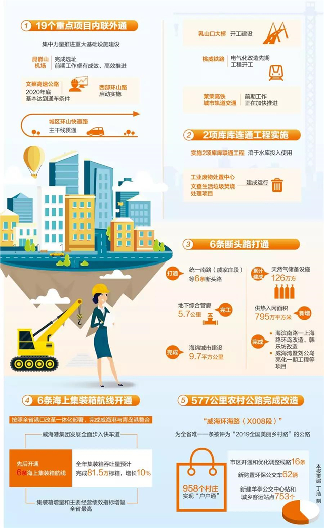 2019年,我市還打通6條斷頭路,新增供熱入網面積795萬平方米,完成海濱南路—上海路環島改造……一個個“枝葉關情”的城市重大基礎工程,正穩穩夯實著“精致城市·幸福威海”的幸福家底。