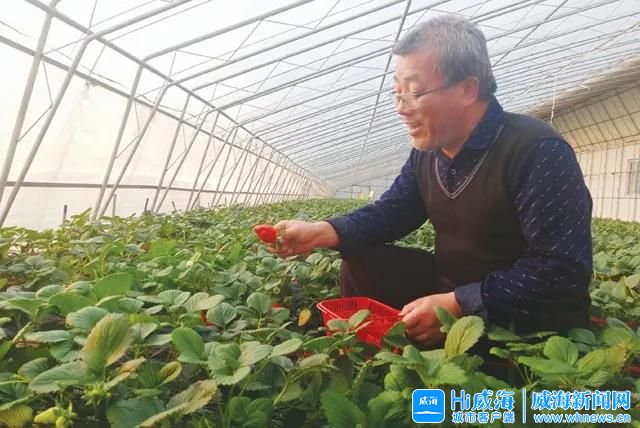 雷彥輝在大棚里摘草莓。Hi威海客戶端記者 高昕 攝