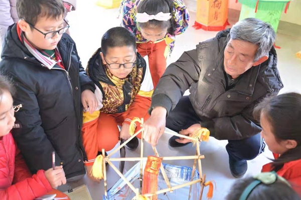 “為什么外面的燈罩上要有拉鏈?”“葉輪是怎樣固定在秸稈上的?”“用什么樣的材質(zhì)能讓燈轉(zhuǎn)起來?”“怎樣減小摩擦力?”,隋書弼老人對同學(xué)們提出的問題一一進行詳細解答。