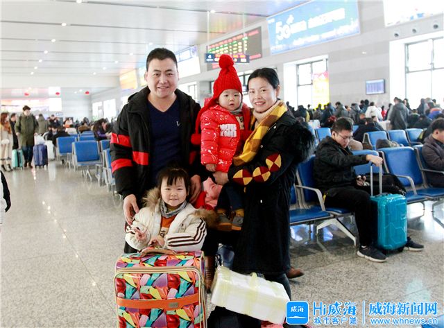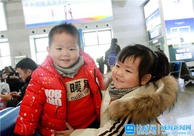 ????13日上午,威海站候車大廳里,33歲的王明和妻子李云帶著5歲的女兒王林熙和2歲的兒子王景熙在候車,他們要從這里坐動車去青島,然后轉(zhuǎn)車去甘肅天水。李云一邊照看兩個孩子,一邊瞅著腳邊的行李,王明則站在旁邊,不時逗逗兩個孩子,一家人其樂融融。