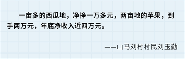 ????鍋里的火越燒越旺,劉玉勤的臉上也泛起了紅光,對(duì)著火光,他又算起了一筆賬:“一畝多的西瓜地,凈掙一萬(wàn)多元,兩畝地的蘋(píng)果,到手兩萬(wàn)元……”年近70歲的老兩口一年下來(lái)靠著果園就掙了不到四萬(wàn)元,劉玉勤高興得嘴都合不攏。