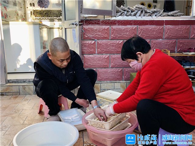 ????在臨港區(qū)黃嵐辦事處山馬劉村,路兩旁早已掛上了大紅燈籠,64歲的村民劉玉勤家里更是熱鬧極了。