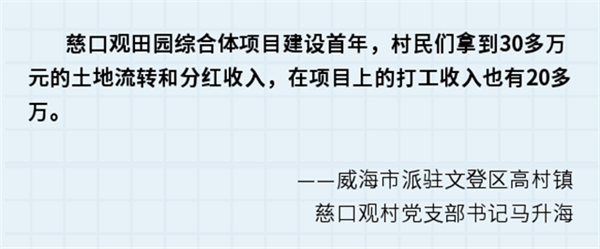 ????說(shuō)起這事,馬升海很“得意”,從2018年開(kāi)始,慈口觀村陸續(xù)流轉(zhuǎn)1500多畝土地、800多畝山巒和80多套空閑房屋,去年總投資12億元的慈口觀田園綜合體項(xiàng)目正式啟動(dòng)建設(shè)了。這一年下來(lái),大伙不僅可以賺取房屋和土地租金,年底還能從合作社里取得分紅,錢袋子怎能不鼓。“這也就是個(gè)開(kāi)始,我們村以后的光景才好著呢!”