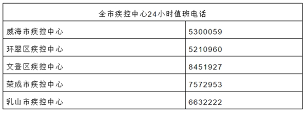 ????威海市衛生健康委溫馨提示:當您對自身的身體情況和周邊其他人的身體情況有任何疑問時,您可隨時撥打全市疾控機構24小時值班電話,我們會安排專業人員為您排憂解難,幫助您迅速就診、判斷病情、解除疑惑。