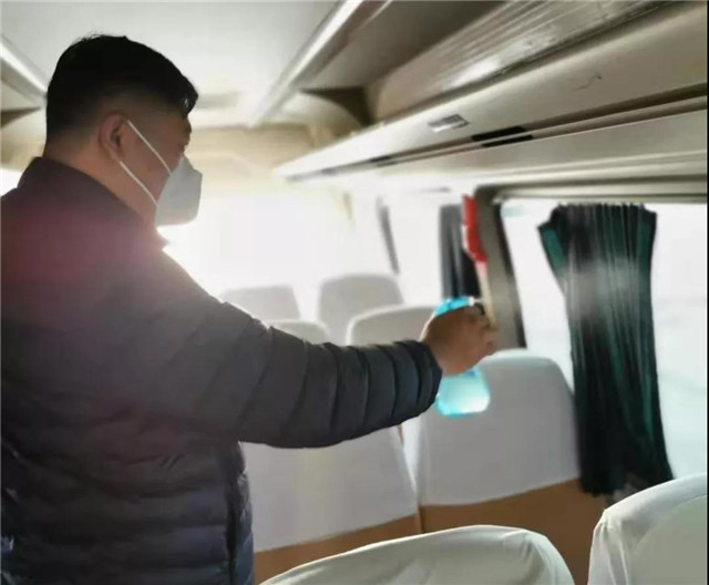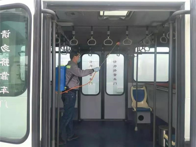 ?交運(yùn)集團(tuán)工作人員對(duì)車輛消毒