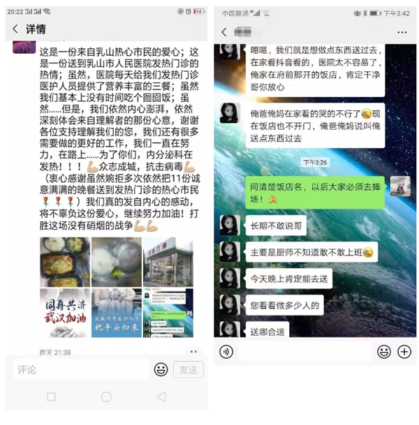 ????幾經轉折,最終電話聯系到這位愛心人士。原來,這位愛心人士姓杜,祖籍乳山,在青島工作,現回乳山老家過年。他在新聞里看到醫護人員為抗擊新型冠狀病毒肺炎,日夜奮戰,非常感動,就點了一份外賣表達自己的心意。杜先生說,“我就是做了一件微不足道的小事,比起你們無私無畏奮斗在臨床一線,我差遠了。以后有機會我給你們包餃子吃!”