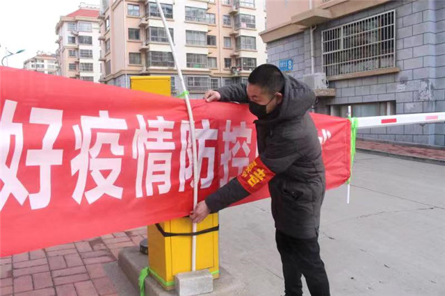 ????掛橫幅、登記往來車輛、勸返來訪人員……寒風凜冽中,四十多歲的叢培威和在職報到黨員一起忙前忙后。