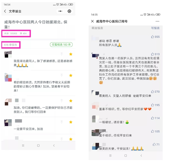 ????她們出發赴鄂的消息發出后,受到了社會各界的廣泛關注,僅醫院微信號目前閱讀量已超過15萬,留言600多條,無論是威海還是黃岡,無論是認識還是陌生,大家都在為她們鼓勁、為她們祈福、愿她們平安……