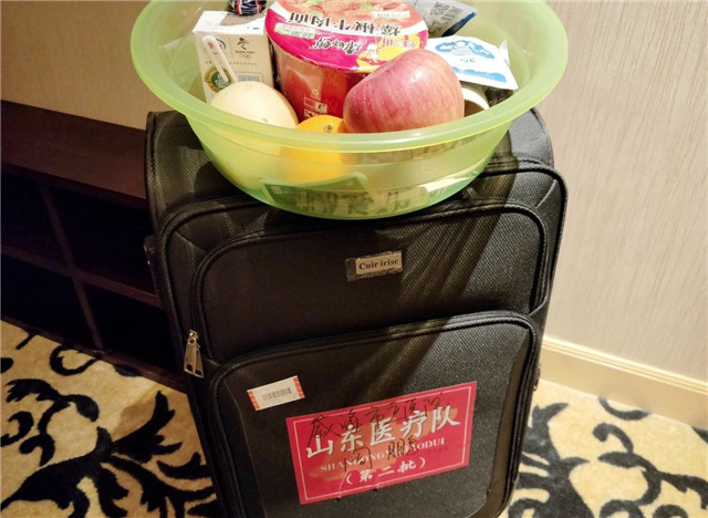 好在班車在我徹底凍僵之前趕了來。上了車,我翻出了在背包最底層的手機,看到了第一個暖心的消息。是周鵬發給我的,信息上說,他們第二批山東赴鄂醫療隊已經平安落地,他不僅為我帶來了保暖的衣物,還從老家ICU給我帶來了兩身分體工作服,作為我防護服內層的小褂……看到他從山東威海經過多次轉乘為我帶來了這么多物資,我的心瞬間涌起一股暖流!