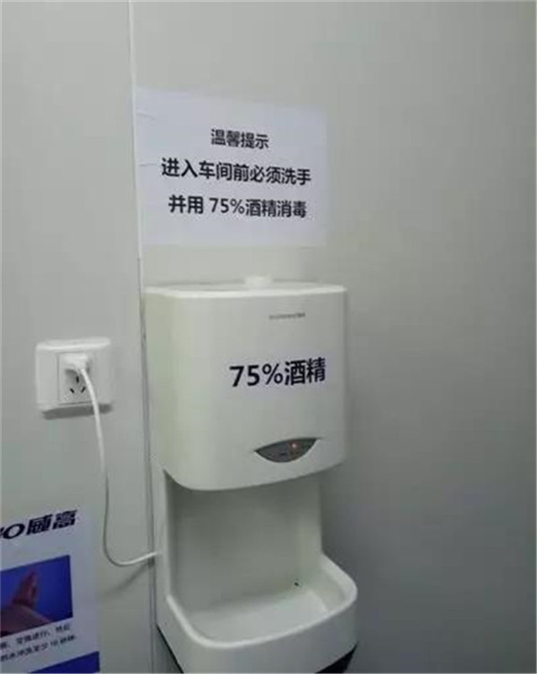走進消毒液生產車間消毒池,墻壁上張貼的“進入車間前必須洗手,并用75%酒精消毒”溫馨提示格外醒目。威高藥業集團副總經理杜武華說:“為確保安全生產,我們在基礎消毒的基礎上,又為進生產車間人員加了一道消毒程序,增設了75%酒精消毒機。”