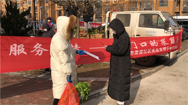 尖椒3.8元/斤、土豆2元/斤、圓蔥2.8元/斤、芹菜2.8元/斤,頭菜2.3元/斤……“現在有疫情,能不出門就不出門??杉依锊荒軘嗖耍姨澤鐓^想得周到,送來了又實惠又新鮮的愛心菜?!本用駞怖滦臐M意足地拎著一大包組合好的蔬菜,由衷地給社區點贊。