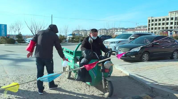 第二天,侯連芳如愿在村頭卡口開始了執勤,主要負責村民勸返、外來車禁行和村民的進村登記消毒。盡管天氣寒冷、露天執勤條件艱苦,但是老人干得很有勁頭,盡心負責。