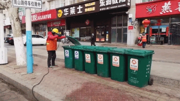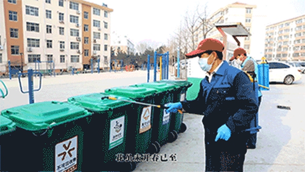 ??????數以百計的環衛工人,在晨光中忙碌,防控疫情,增添了一道消毒的工序,一絲不茍,忙碌的身影晃醒了黎明。
