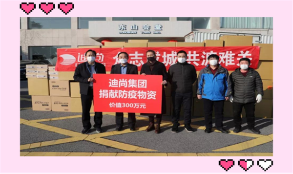 2月3日,迪尚集團總經理李淑麗,將高級醫用口罩等價值300萬元的防疫物資捐贈給威海市慈善總會用于疫情防控。