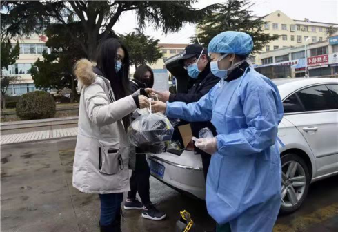在威海乳山,兩位女孩為乳山市人民醫(yī)院發(fā)熱門診送來了愛心午餐。