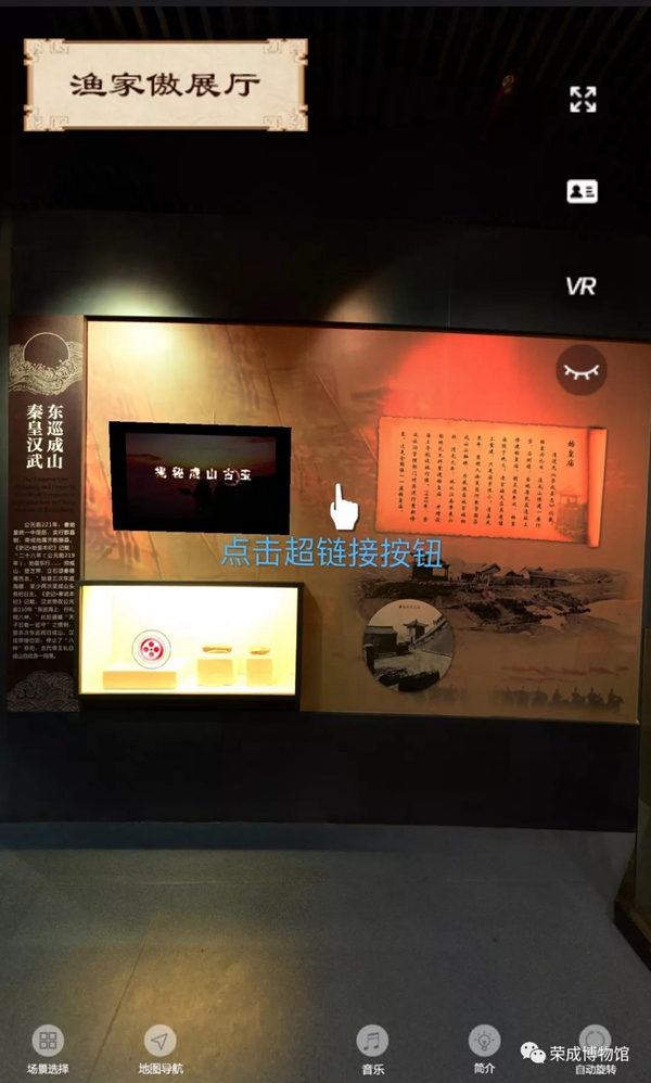 ??????進入數字展館后,點擊超鏈接按鈕,即可身臨其境的體驗數字榮成博物館。
