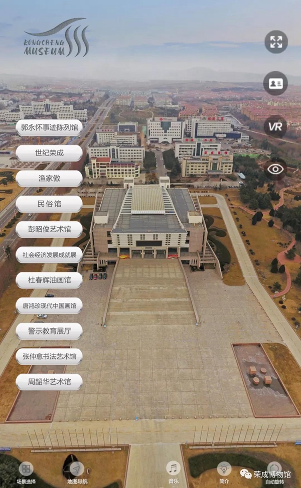 ??????2、進入榮成博物館官方微信公眾號,點擊“VR導覽”即可進入分類虛擬展廳。