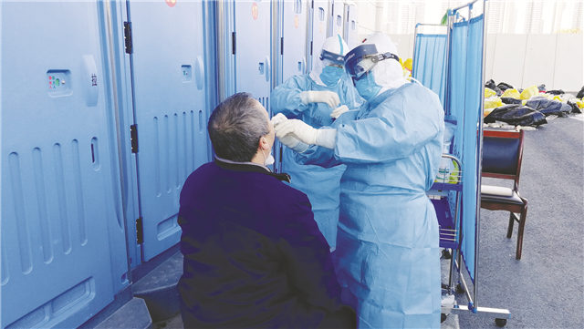 ??????方艙醫院不比隔離病房,空間大了,患者也較多。初次進艙,采集、防護等工作更需格外謹慎。16日下午,按照操作流程,我穿上防護服,戴上手套正式進入艙內,為患者采集咽拭子,進行核酸檢測。這是整個護理工作中最危險的環節。