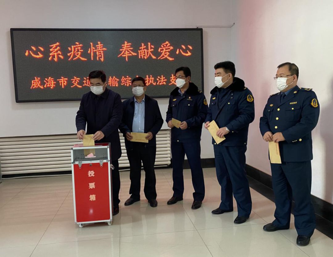 奉獻愛心,共克時艱。2月21日,市交通運輸局黨組發出倡議,開展“抗疫情獻愛心”活動,號召市交通運輸系統各級黨組織和廣大黨員干部發揮堡壘旗幟作用,用愛心堅守初心、用行動踐行使命,凝聚全局力量、伸出援助之手,以實際行動助力全面打贏新冠肺炎疫情防控阻擊戰。連日來,市交通運輸各級各單位領導班子成員帶頭捐款,廣大交通干部職工踴躍參與獻出自己一份愛心。目前,共籌集愛心捐款408831元,善款將通過市慈善總會轉到湖北戰“疫”一線,為支援前線貢獻威海交通力量。