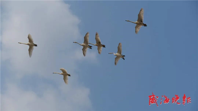 ??????據(jù)了解,通常在每年的10月底,隨著冷空氣南下,在西伯利亞貝加爾湖等地棲息的大天鵝就會飛到榮成越冬,翌年的2月中下旬至3月中旬,大天鵝們開始向北方的夏季棲息地回遷。