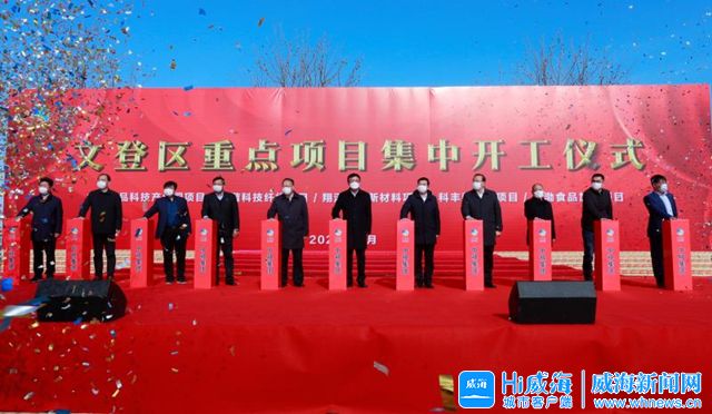 ????威海新聞網 2月27日,文登區中糧食品科技產業園、和諧科技纖維、科豐新材料、海渤食品加工、翔澤科技新材料5個項目集中開工。市領導王魯明、張海波、王學文、高旭光出席開工儀式。