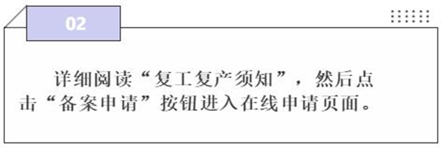 ????為做好新冠肺炎疫情防控工作,有序推動企業復工復產,“復工復產企業備案”系統上線了。企業進入“復工復產企業備案”系統進行線上備案申請,讓政務服務變“企業跑腿”為“信息跑路”,助力企業做好疫情防控,有序復工復產。