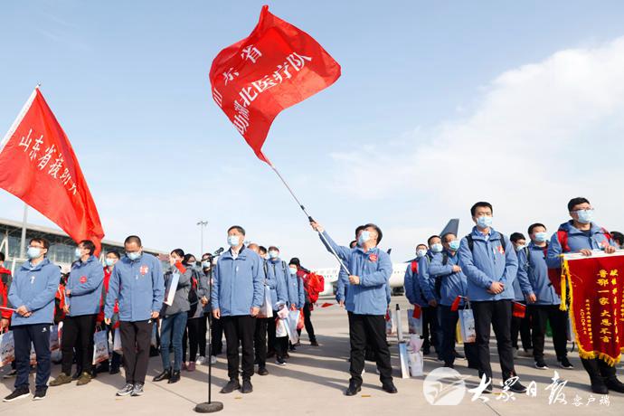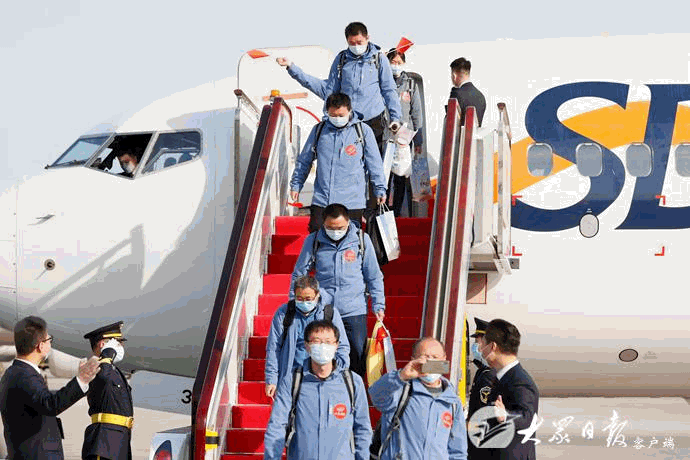 山東省援助湖北第三批返魯人員凱旋 劉家義到機場迎接